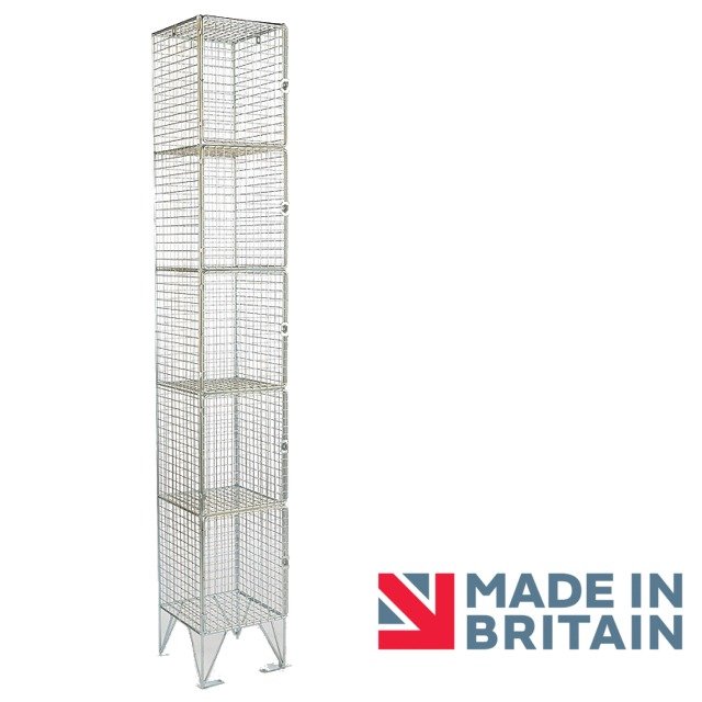 Wire Mesh 5-Door Lockers are perfect for environments where high ventilation and full visibility is required. they are very popular in water sports as wet suits, life jackets and other equipment can dry and drain properly whilst being secure at the same time. Also ideal for workplaces where clothing comes into contact with strong odours, fumes and dust will benefit from have mesh lockers to securely air these items out.