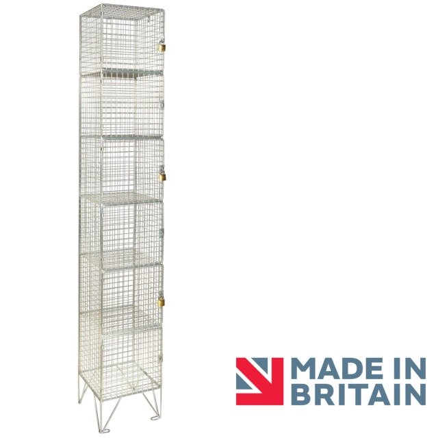 Wire Mesh 6-Door Lockers are perfect for environments where high ventilation and full visibility is required. they are very popular in water sports as wet suits, life jackets and other equipment can dry and drain properly whilst being secure at the same time. Also ideal for workplaces where clothing comes into contact with strong odours, fumes and dust will benefit from have mesh lockers to securely air these items out.