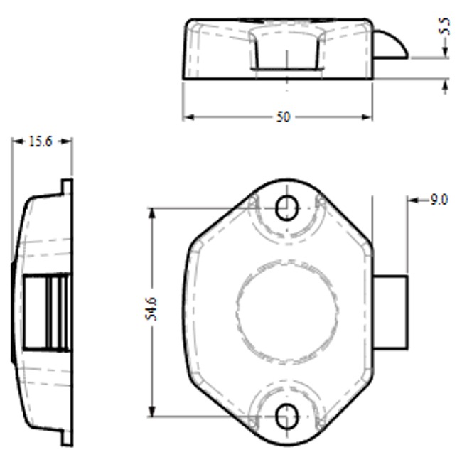 The lock comprises of a standard 3780 digital code lock with an “0” barrel length, and a slamlock attachment 2382 shown in the Technical Drawing below.